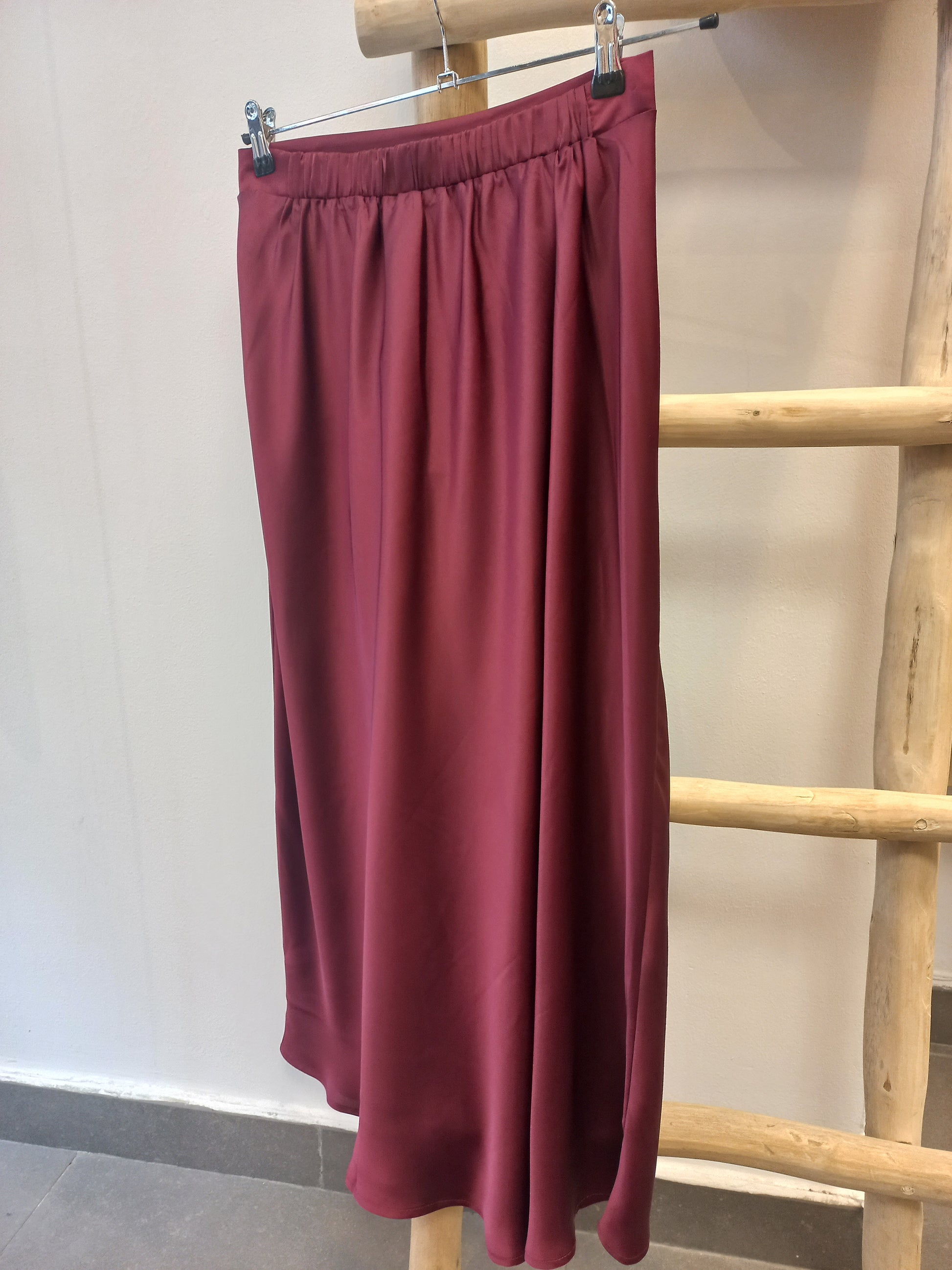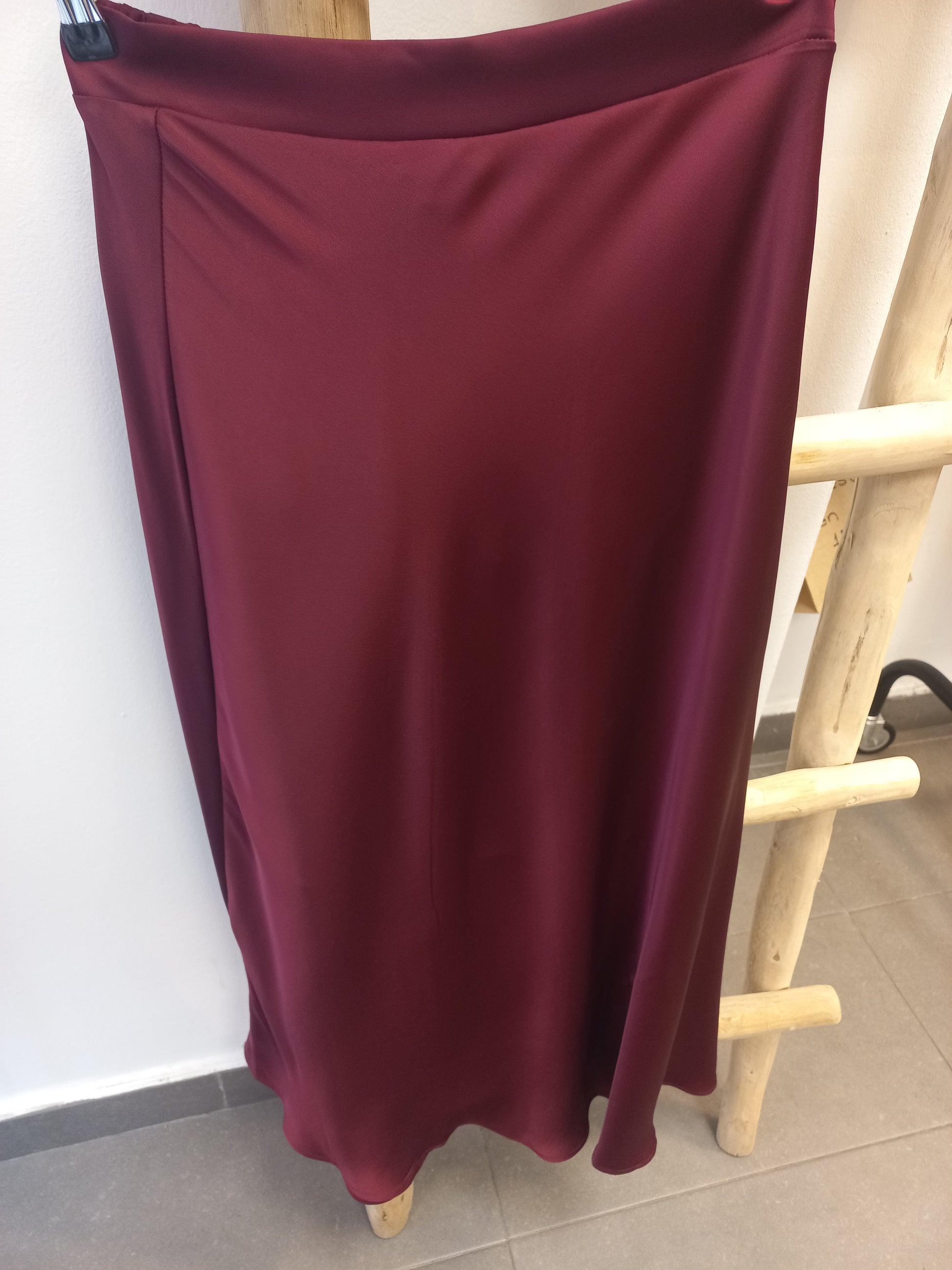 Falda Satinada fresca, color rojo pora mayor comodidad cuenta con goma.